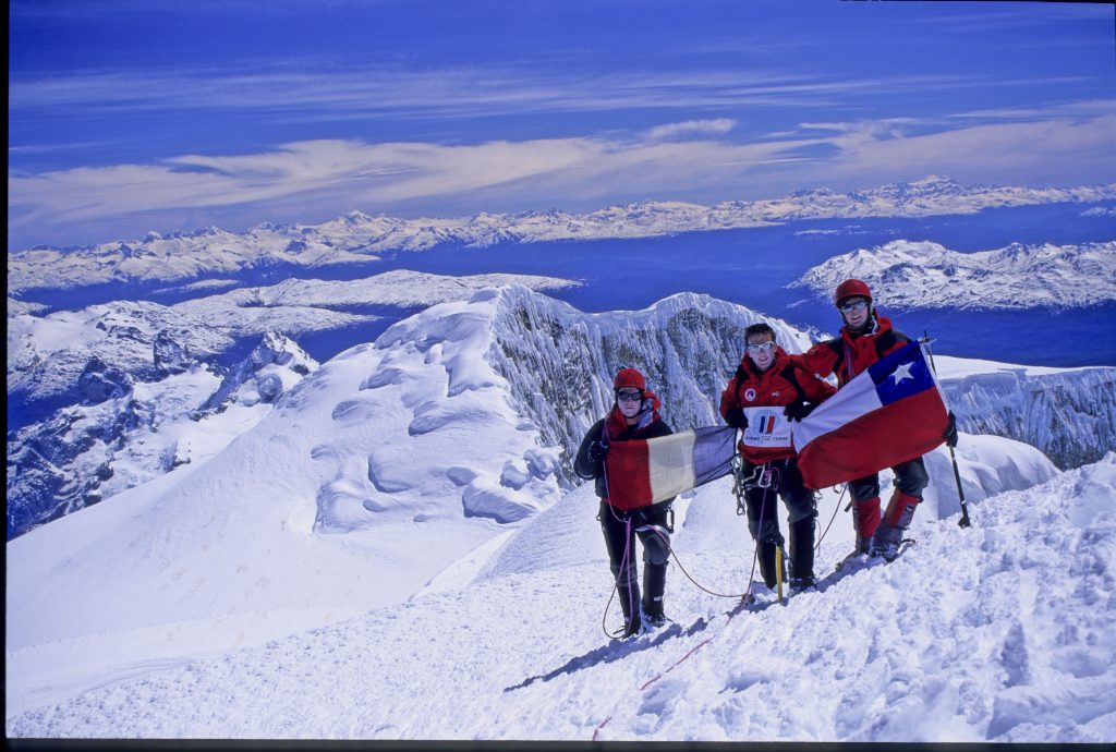 – Toute l’équipe au sommet avec une mention spéciale pour nos deux amis chiliens de l’Ecole de montagne, Felipe et Gerardo.