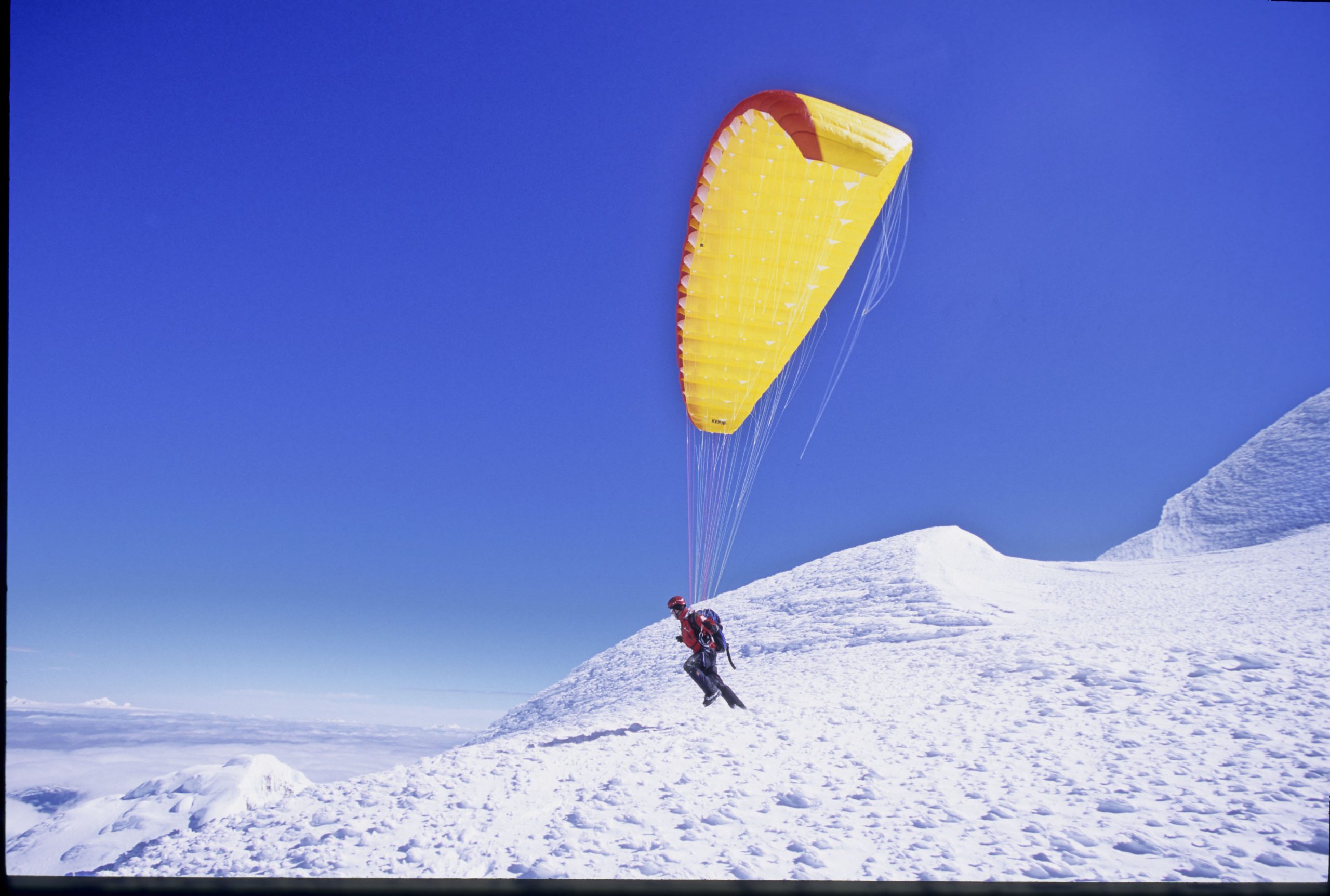 – Premier vol en parapente depuis le sommet du San Lorenzo.