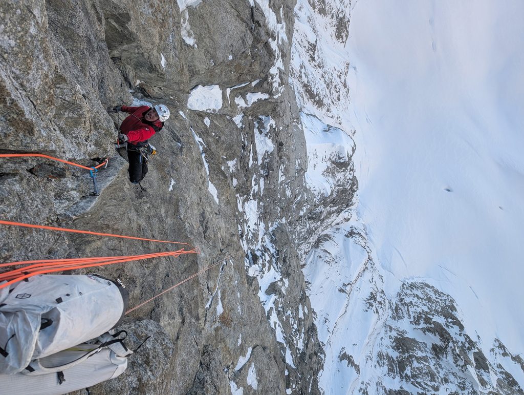 Le lieu est idéal pour pousser le curseur. Une paroi raide, un rocher suffisamment compact, mais pas trop pour autoriser le jeu des lames, une hauteur raisonnable pour prendre le temps, et une face nord qui impose le mixte. Un laboratoire naturel.